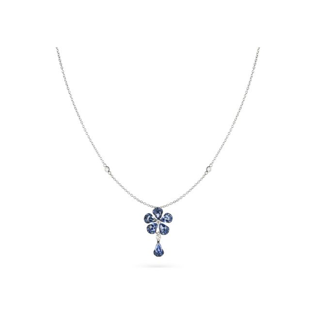 Poppy Blue Collier Cesare Pompanon Primavera In Pizzo goutte en or blanc, diamants et saphir bleu