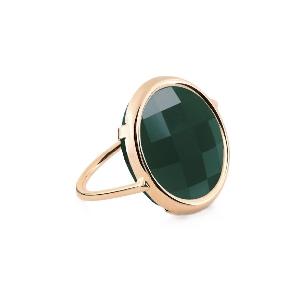 Bague Ginette NY Disc en or rose et agate verte Pixie