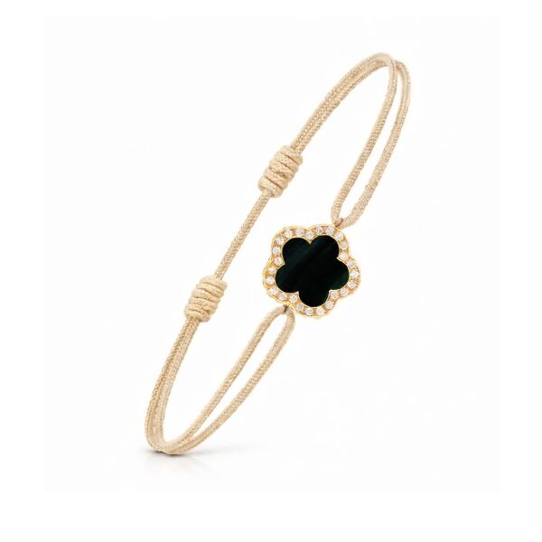 Bracelet sur cordon Cesare Pompanon Fiore di Mamma en or jaune, onyx et diamants